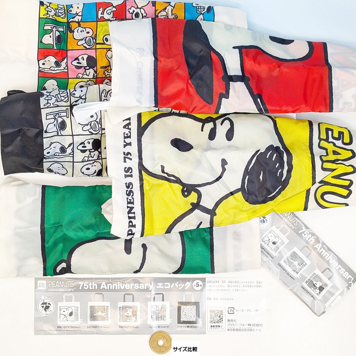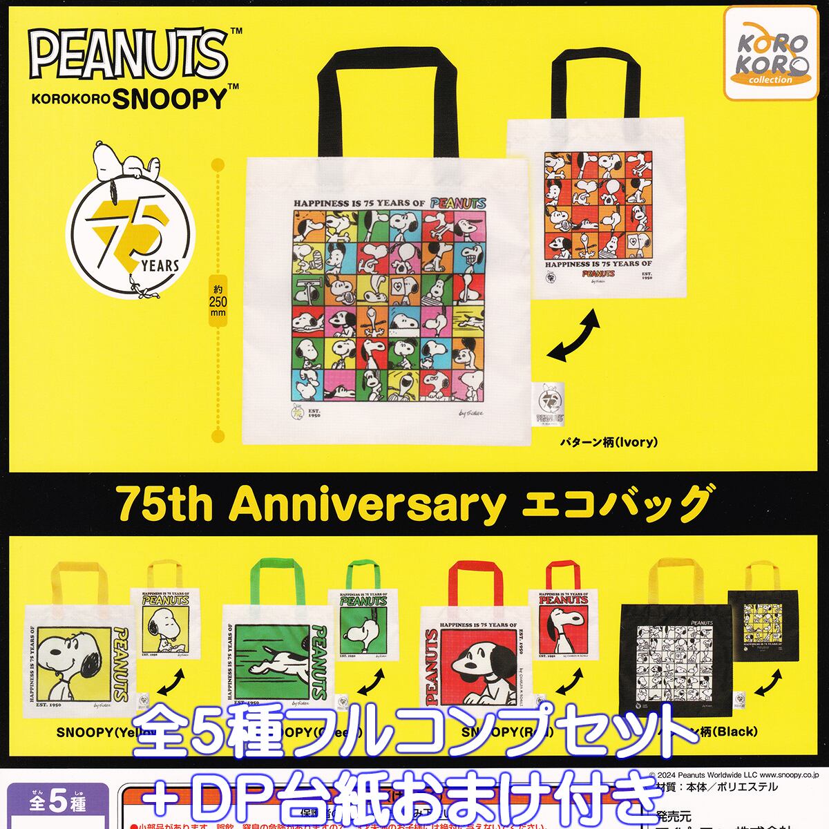 PEANUTS KOROKOROSNOOPY 75th Anniversary エコバッグ アイピーフォー 【全5種フルコンプセット+DP台紙おまけ付き】 ピーナッツ スヌーピー グッズ 手提げ袋 ビーグル犬 ガチャガチャ カプセルトイ【即納 在庫品】【数量限定】【フルコンプリート】