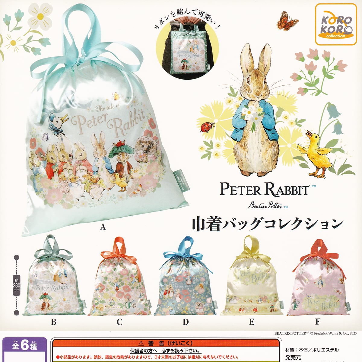 PETER RABBIT 巾着バッグコレクション アイピーフォー 【全6種フルコンプセット+DP台紙おまけ付き】 ピーターラビット グッズ 手提げ袋 小物入れ 動物 ウサギ ガチャガチャ カプセルトイ【即納 在庫品】【数量限定】【フルコンプリート】 | お宝市場BASE店 【フィギュア・ガチャガチャ・ガチャポン・食玩・プライズ・アニメ・グッズ・模型・ミニチュア】