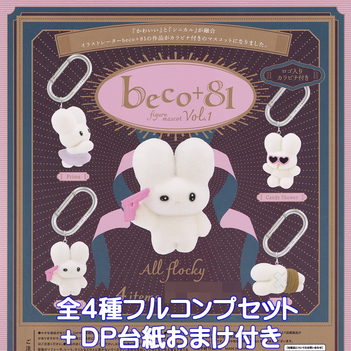 beco+81 フィギュアマスコット Vol.1 ケンエレファント 【全4種フルコンプセット+DP台紙おまけ付き】 ロゴ入りカラビナ付き グッズ フィギュア バッグチャーム 2025 ガチャガチャ カプセルトイ【即納 在庫品】【数量限定】【フルコンプリート】