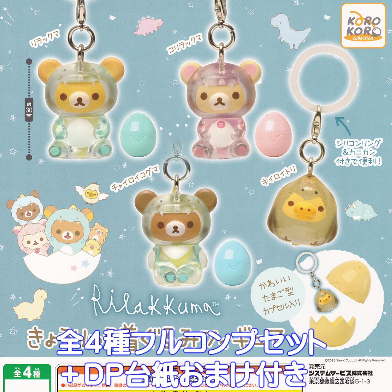 リラックマ きょうりゅう着ぐるみフィギュア システムサービス 【全4種フルコンプセット+DP台紙おまけ付き】 Rilakkuma DINOSAUR KIGURUMI San-X グッズ フィギュア たまご型カプセル入り 恐竜 ガチャガチャ カプセルトイ【即納 在庫品】【数量限定】【フルコンプリート】