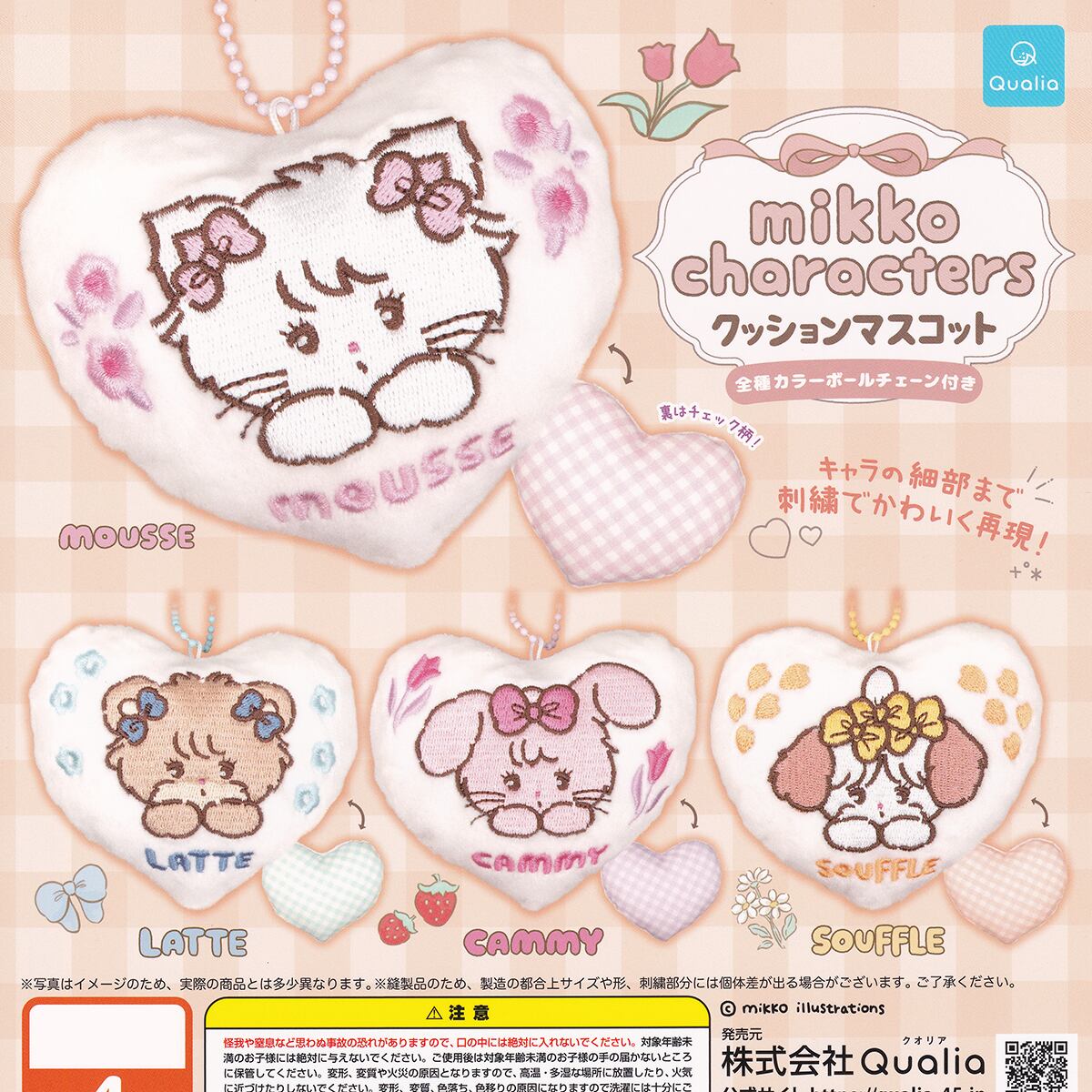 mikko characters クッションマスコット Qualia 【人気の2種セット】 Cushion Mascot 刺繍 かわいいハート型 アクセサリー グッズ バッグチャーム ガチャガチャ カプセルトイ【即納 在庫品】【数量限定】 | お宝市場BASE店 【フィギュア・ガチャガチャ・ガチャポン・食玩・プライズ・アニメ・グッズ・模型・ミニチュア】