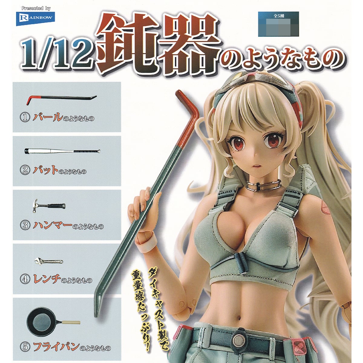 1/12鈍器のようなもの レインボー 【全5種フルコンプセット+DP台紙おまけ付き】 ダイキャスト製 グッズ フィギュア 合金 どんき ガチャガチャ カプセルトイ【即納 在庫品】【数量限定】【フルコンプリート】 | お宝市場BASE店 【フィギュア・ガチャガチャ・ガチャポン・食玩・プライズ・アニメ・グッズ・模型・ミニチュア】