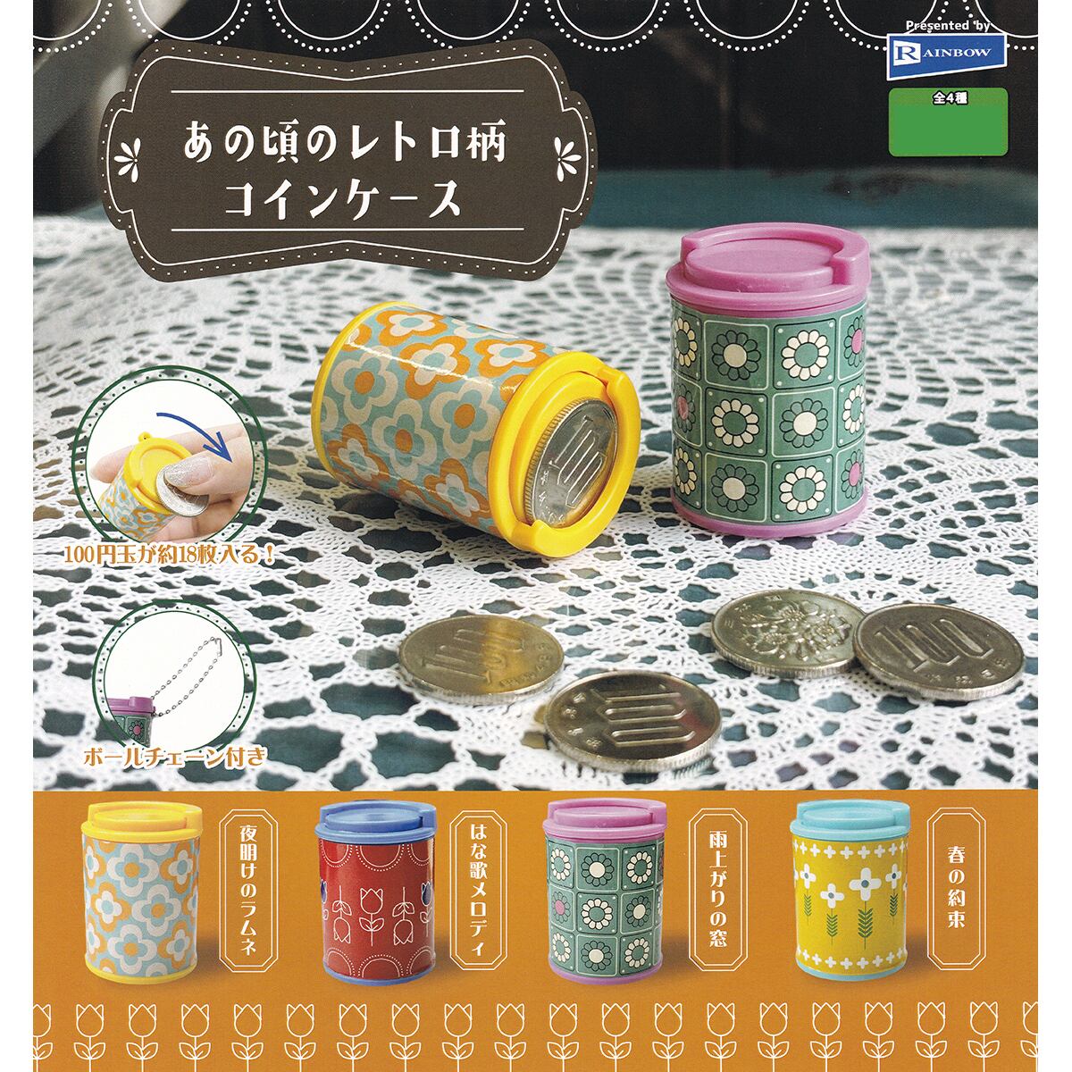 100円玉が約18枚入る!全種ボールチェーン付き「あの頃のレトロ柄コインケース」がカプセルトイで新登場です。