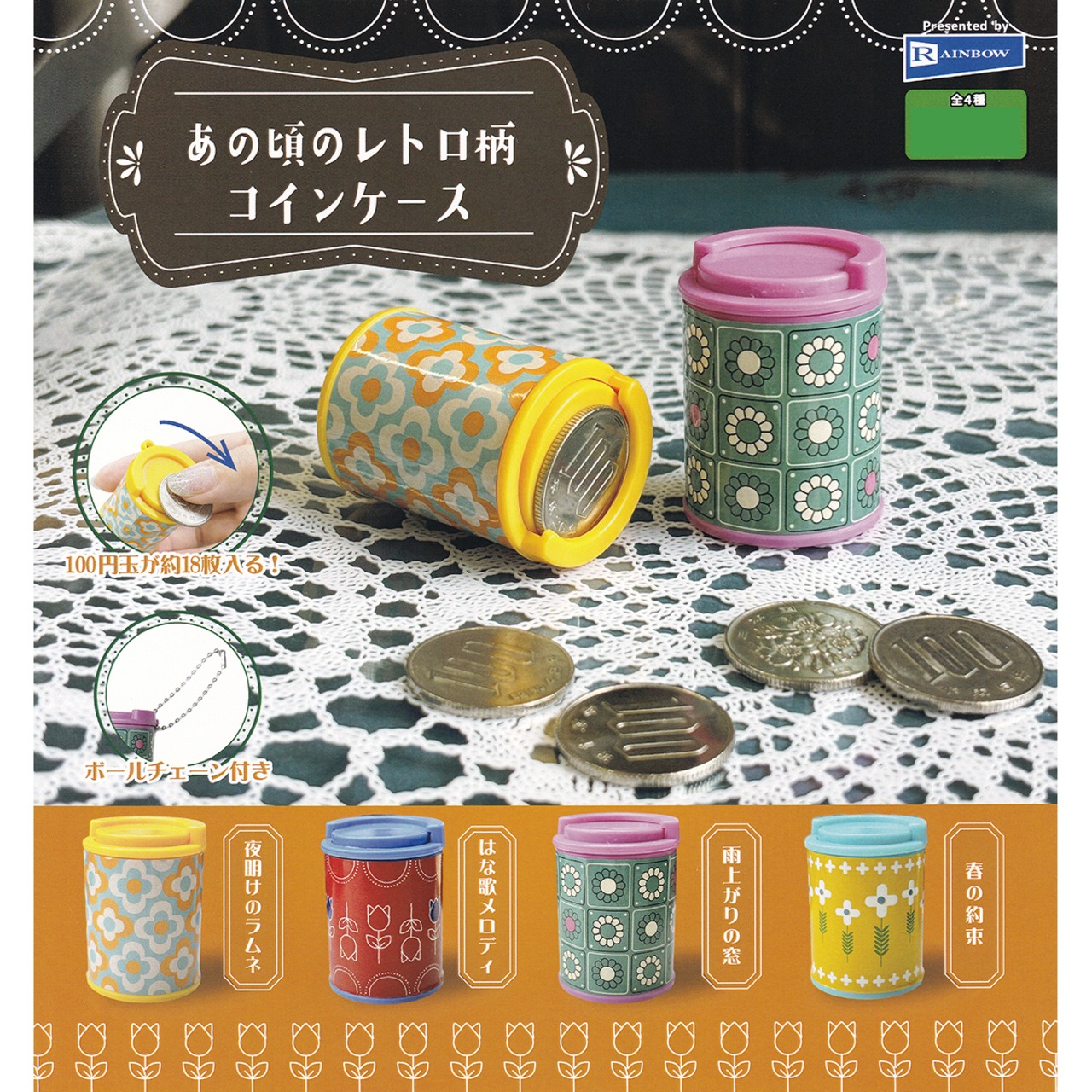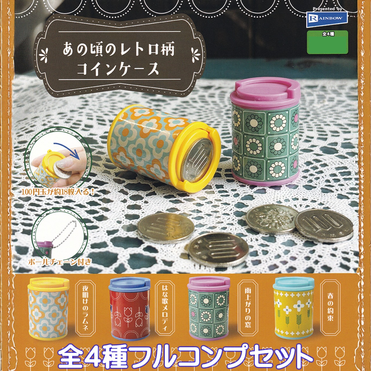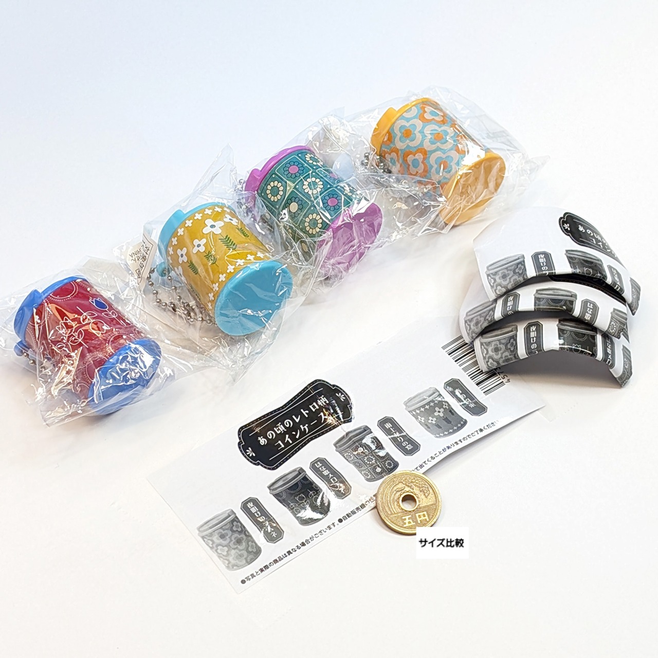 100円玉が約18枚入る!全種ボールチェーン付き「あの頃のレトロ柄コインケース」がカプセルトイで新登場です。