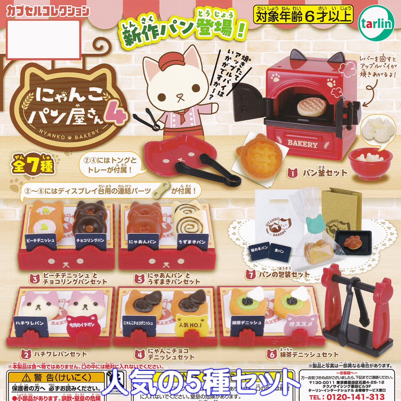 にゃんことパン屋さん4 ターリン・インターナショナル 【人気の5種セット】 カプセルコレクション 猫 動物 グッズ フィギュア ガチャガチャ カプセルトイ【即納 在庫品】【数量限定】