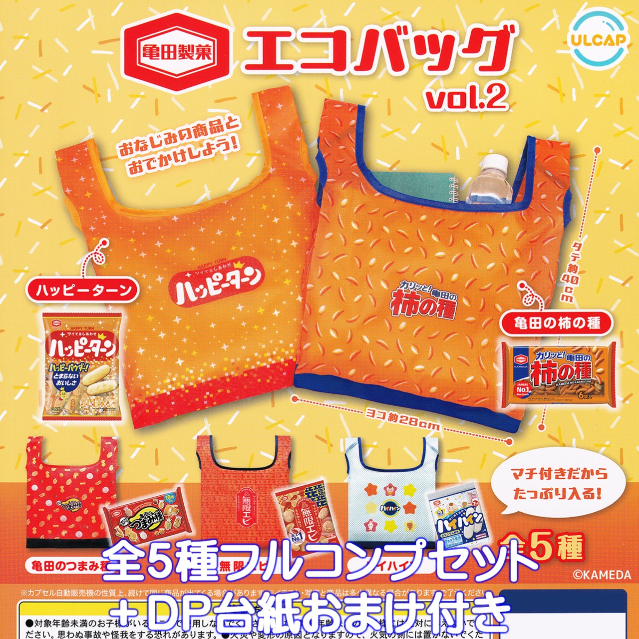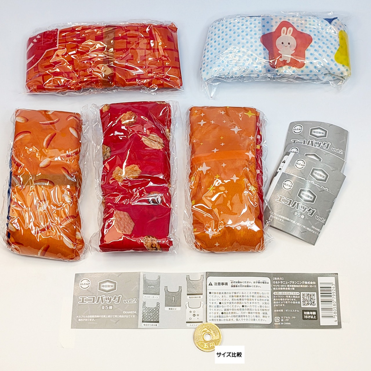 亀田製菓エコバッグ vol.2 ウルトラニュープランニング 【全5種フルコンプセット+DP台紙おまけ付き】 ECOBAG グッズ 手提げ袋 買い物袋 マイバッグ デザイン アート ガチャガチャ カプセルトイ【即納 在庫品】【数量限定】【フルコンプリート】