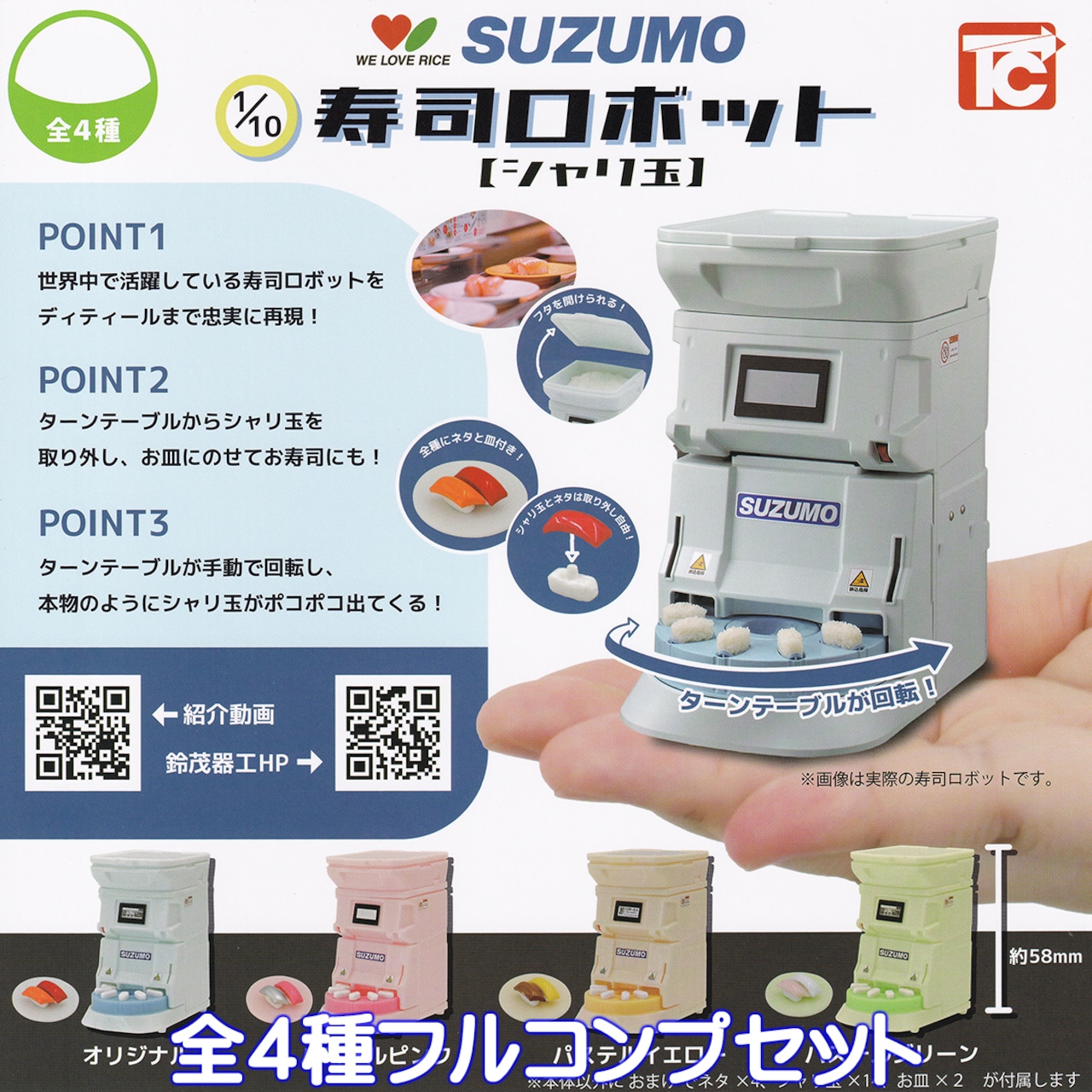 WE LOVE RICE SUZUMO 1/10 寿司ロボット【シャリ玉】 トイズキャビン 【全4種フルコンプセット】 ミニチュア グッズ フィギュア 鈴茂器工 スズモ 模型 日本 和食 食文化 ガチャガチャ カプセルトイ【即納 在庫品】【数量限定】【フルコンプリート】
