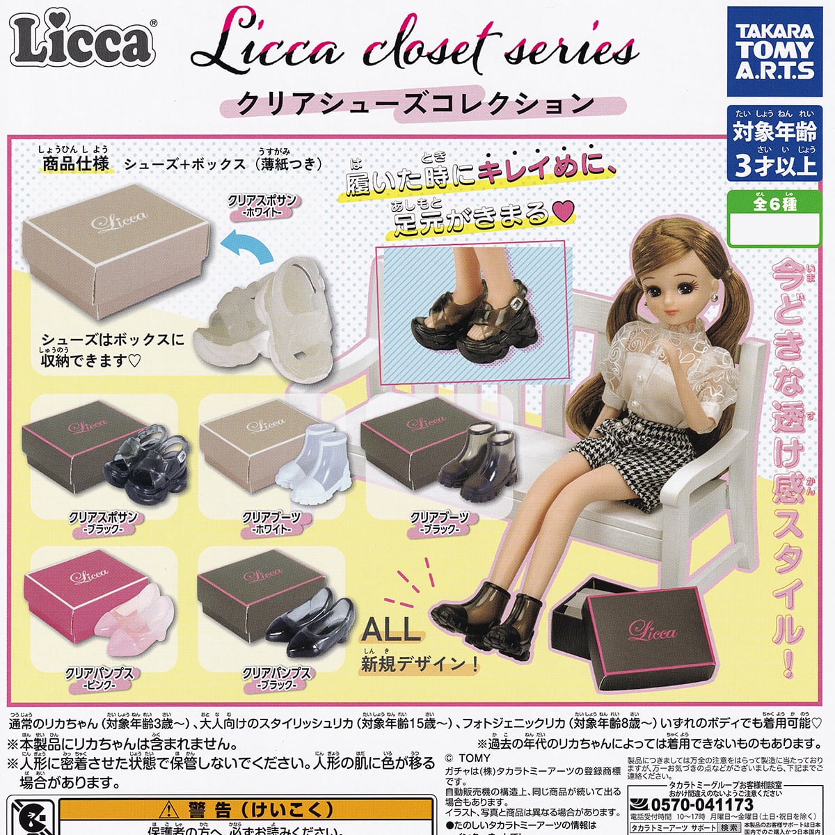 Licca closet series クリアシューズコレクション タカラトミーアーツ 【全6種フルコンプセット】 リカちゃん 靴 ミニチュア グッズ フィギュア ボックス 紙箱 ガチャガチャ カプセルトイ【即納 在庫品】【数量限定】【フルコンプリート】