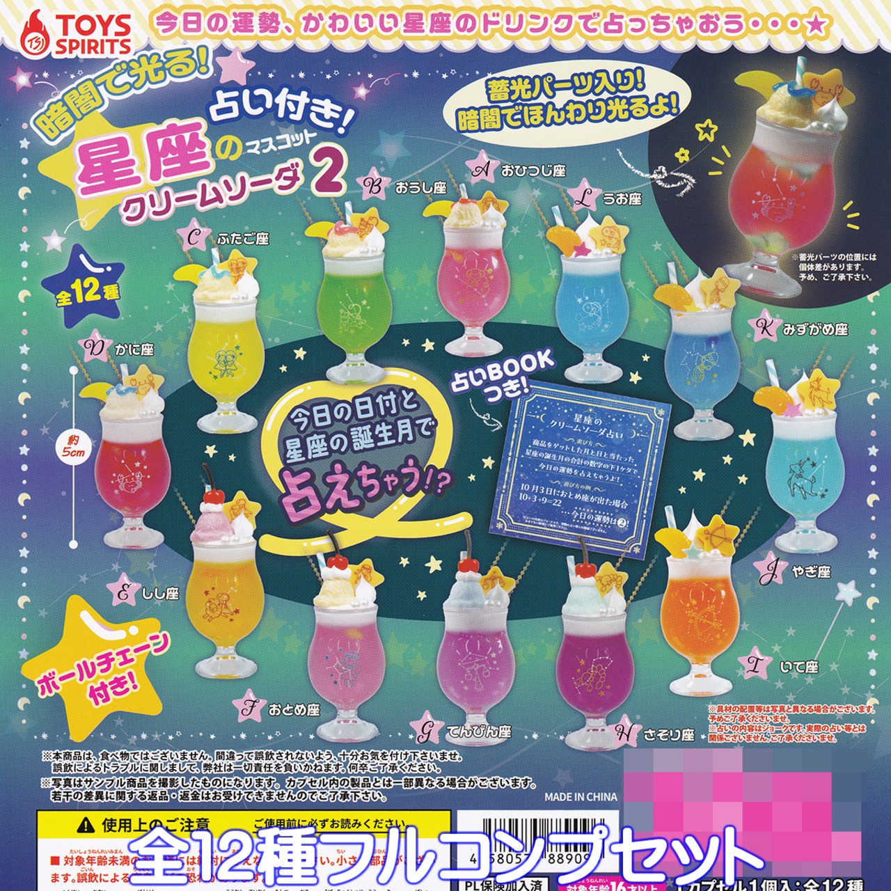 暗闇で光る!占い付き!星座のクリームソーダマスコット2 トイズスピリッツ 【全12種フルコンプセット】 蓄光パーツ入り グッズ フィギュア レトロ カフェ ガチャガチャ カプセルトイ【即納 在庫品】【数量限定】【フルコンプリート】