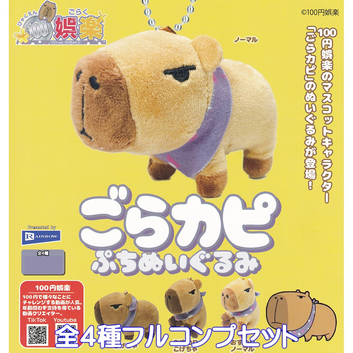 100円娯楽 ごらカピぷちぬいぐるみ レインボー 【全4種フルコンプセット】 100yen GORAKU 動画クリエイター 動物 グッズ カピバラ ガチャガチャ カプセルトイ【即納 在庫品】【数量限定】【フルコンプリート】