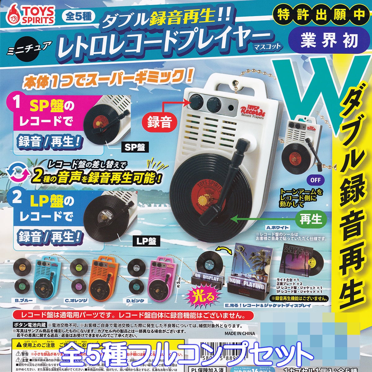 ダブル録音再生!! ミニチュアレトロレコードプレイヤーマスコット トイズスピリッツ 【全5種フルコンプセット】 グッズ フィギュア 音楽 模型 ガチャガチャ カプセルトイ【即納 在庫品】【数量限定】【フルコンプリート】