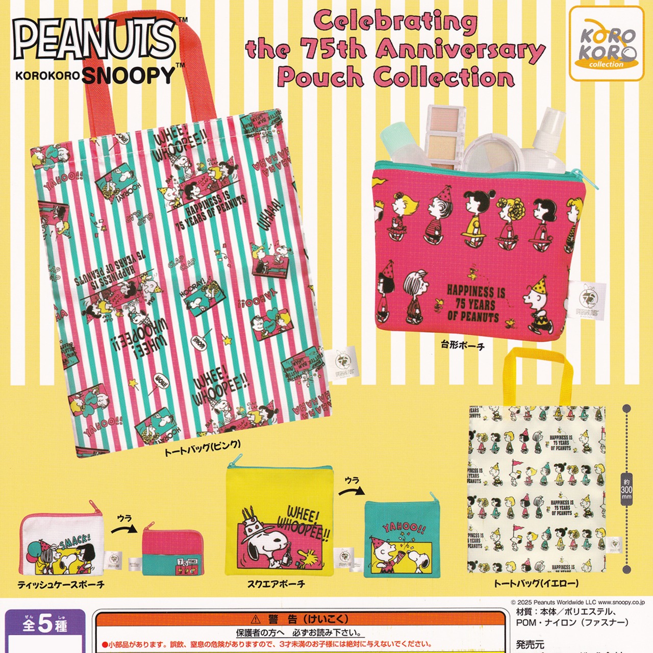 スヌーピーファン必見!「KOROKOROSNOOPY」75周年を記念したキュートなポーチコレクションがカプセルトイで新登場です。