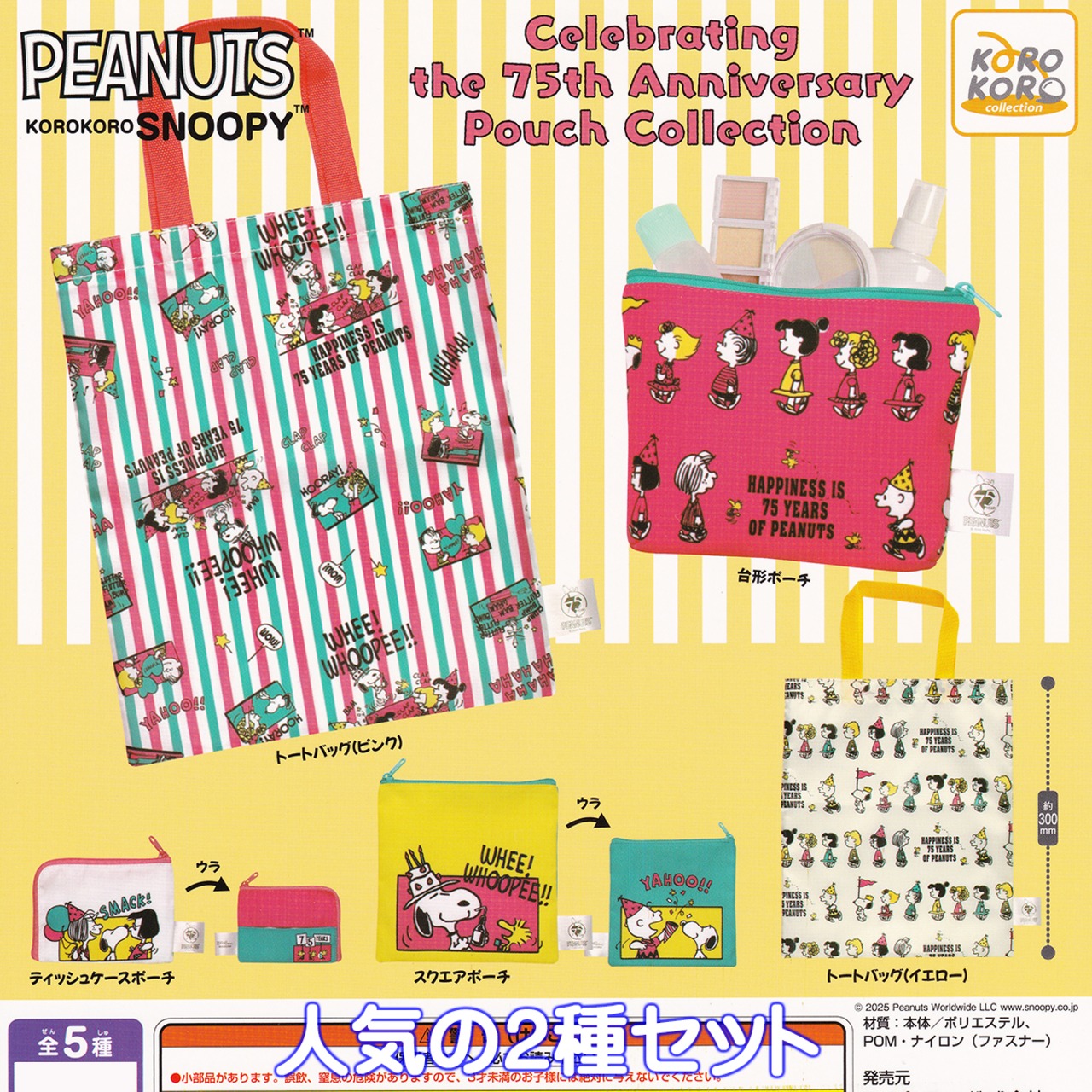 KOROKOROSNOOPY Celebrating the 75th Anniversary Pouch Collection アイピーフォー 【人気の2種セット】 ピーナッツ スヌーピー グッズ ポーチ 縫製袋 小物入れ ガチャガチャ カプセルトイ【即納 在庫品】【数量限定】