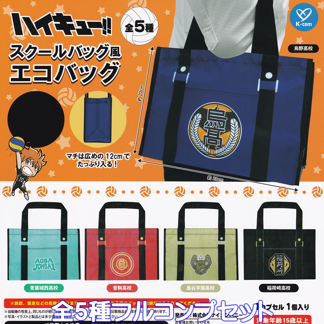 ハイキュー!! スクールバッグ風エコバッグ ケイカンパニー 【全5種フルコンプセット】 Haikyu!! ECO BAG グッズ バレーボール 手提げ袋 排球 ガチャガチャ カプセルトイ【即納 在庫品】【数量限定】【フルコンプリート】
