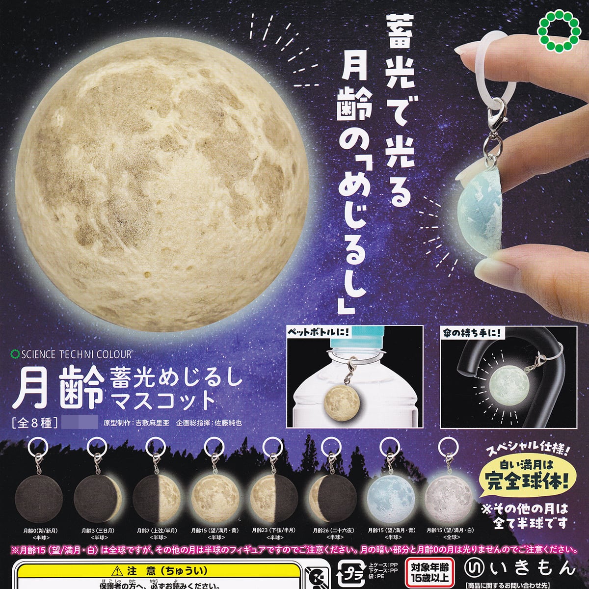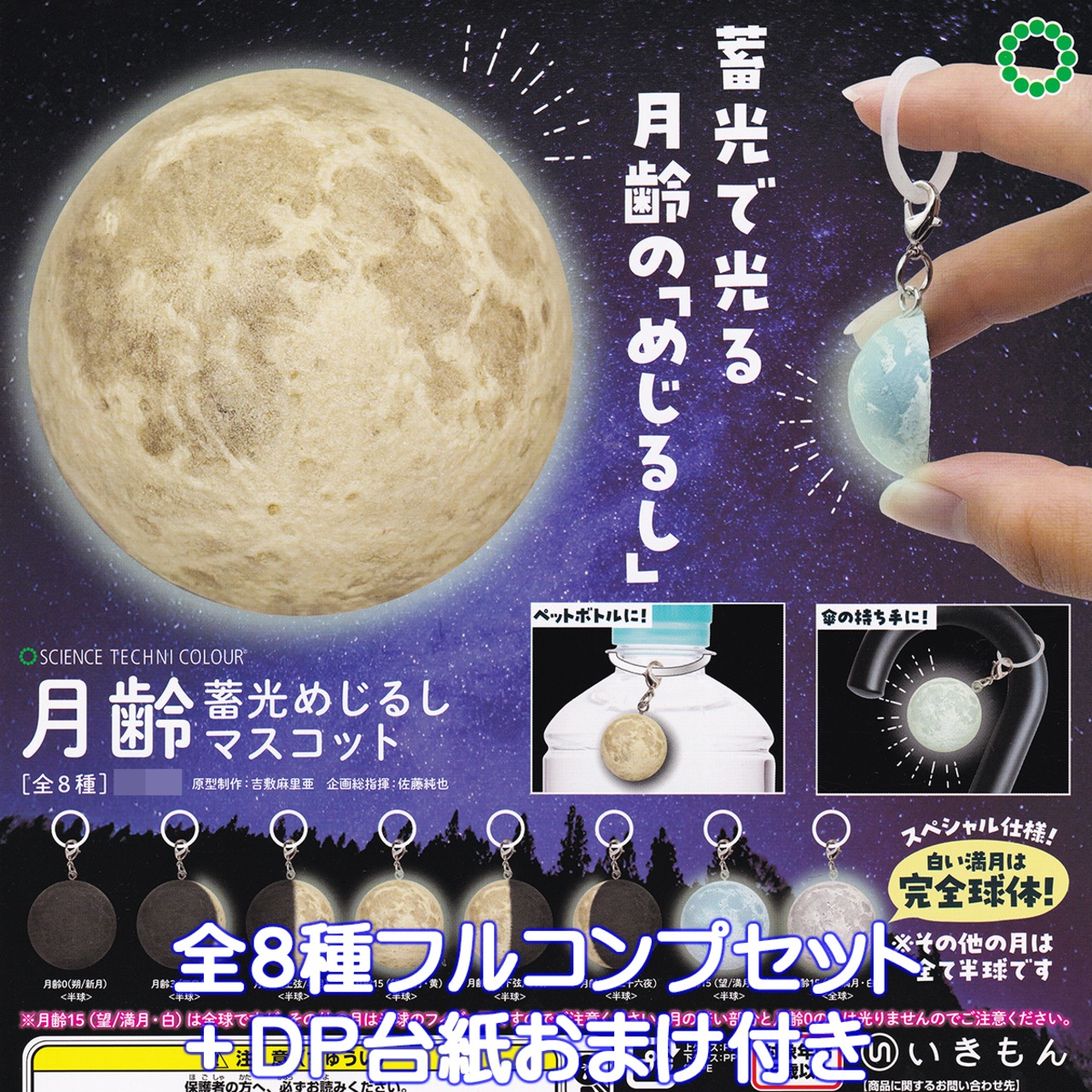 サイエンステクニカラー 月齢 蓄光めじるしマスコット いきもん 【全8種フルコンプセット+DP台紙おまけ付き】 SCIENCE TECHNI COLOUR STC full moon グッズ フィギュア 満月 チャーム 天体観測 ガチャガチャ カプセルトイ【即納 在庫品】【数量限定】【フルコンプリート】