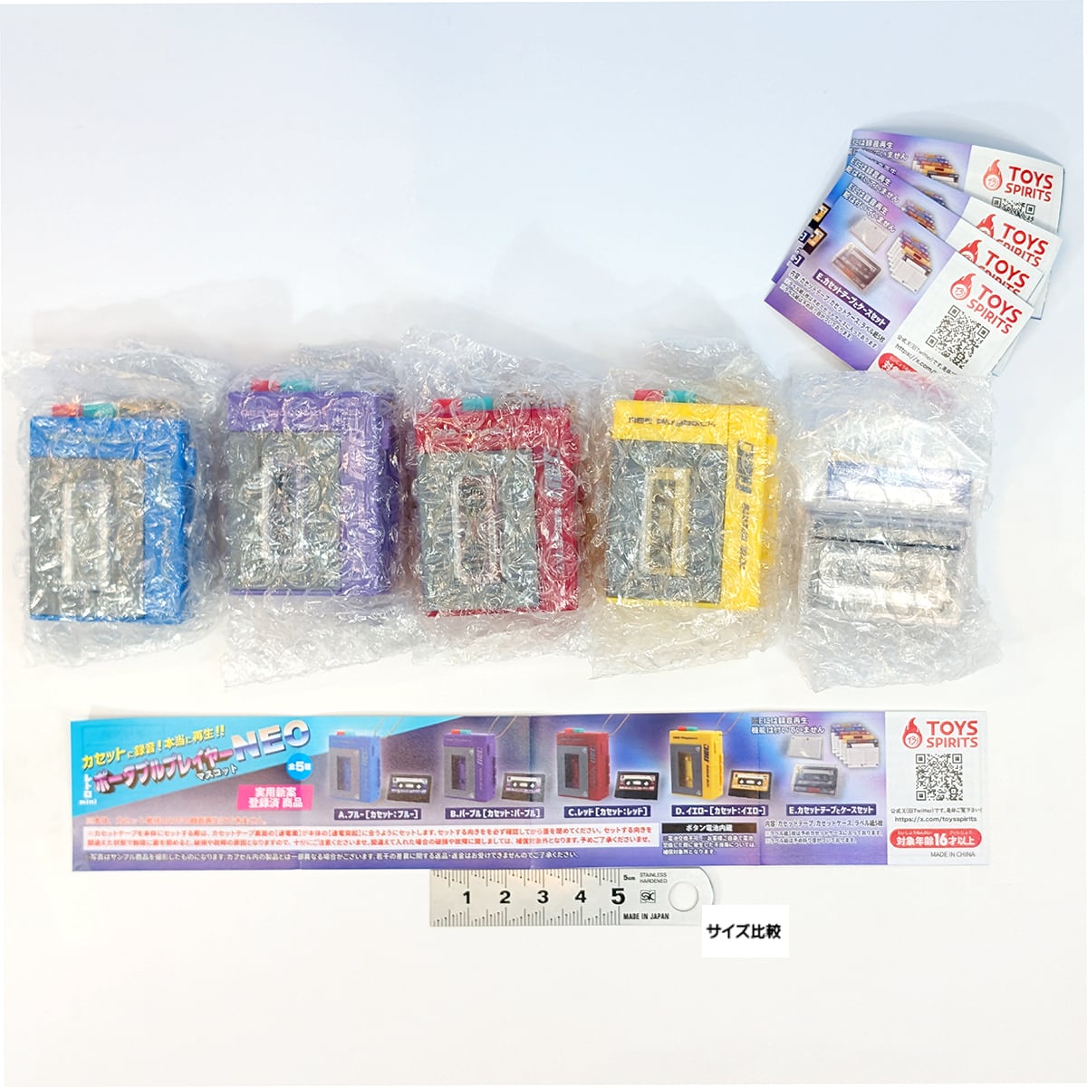 カセットに録音!本当に再生!! レトロminiポータブルプレイヤーマスコットNEO トイズスピリッツ 【全5種フルコンプセット+DP台紙おまけ付き】 グッズ フィギュア ネオ バッグチャーム 模型 ガチャガチャ カプセルトイ【即納 在庫品】【数量限定】【フルコンプリート】