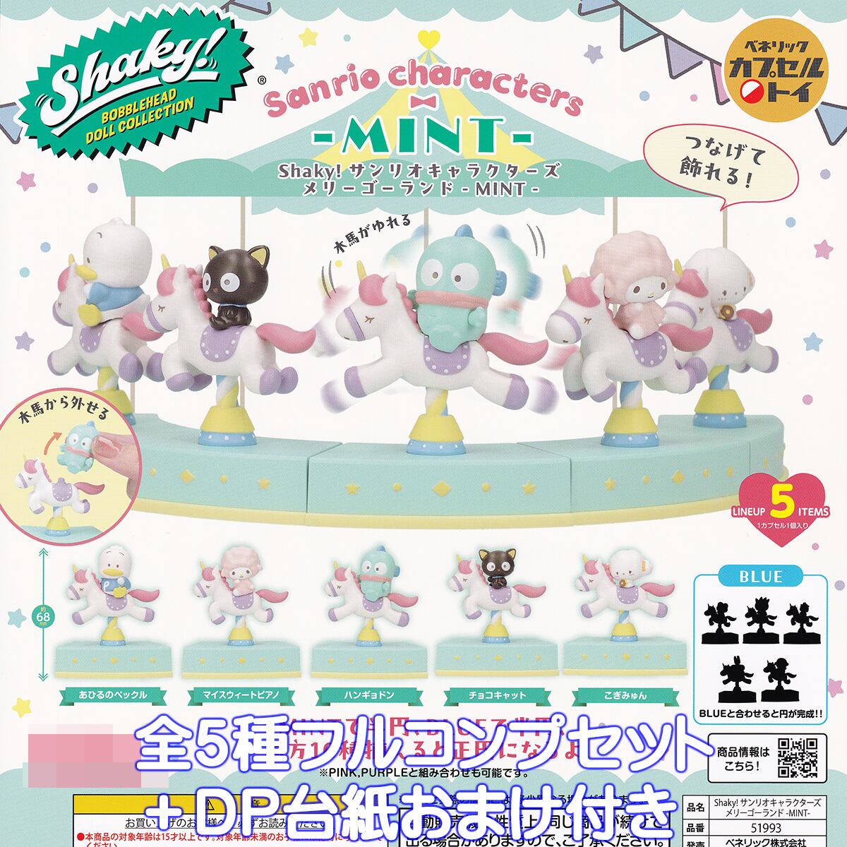Shaky! サンリオキャラクターズ メリーゴーランド MINT ミント ベネリック 【全5種フルコンプセット+DP台紙おまけ付き】 シェイキー SANRIO CHARACTERS グッズ フィギュア ガチャガチャ カプセルトイ【即納 在庫品】【数量限定】【フルコンプリート】 | お宝市場BASE店 【フィギュア・ガチャガチャ・ガチャポン・食玩・プライズ・アニメ・グッズ・模型・ミニチュア】