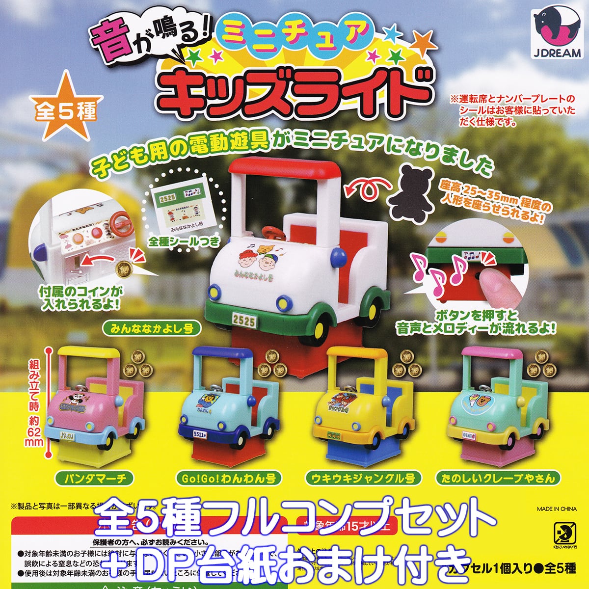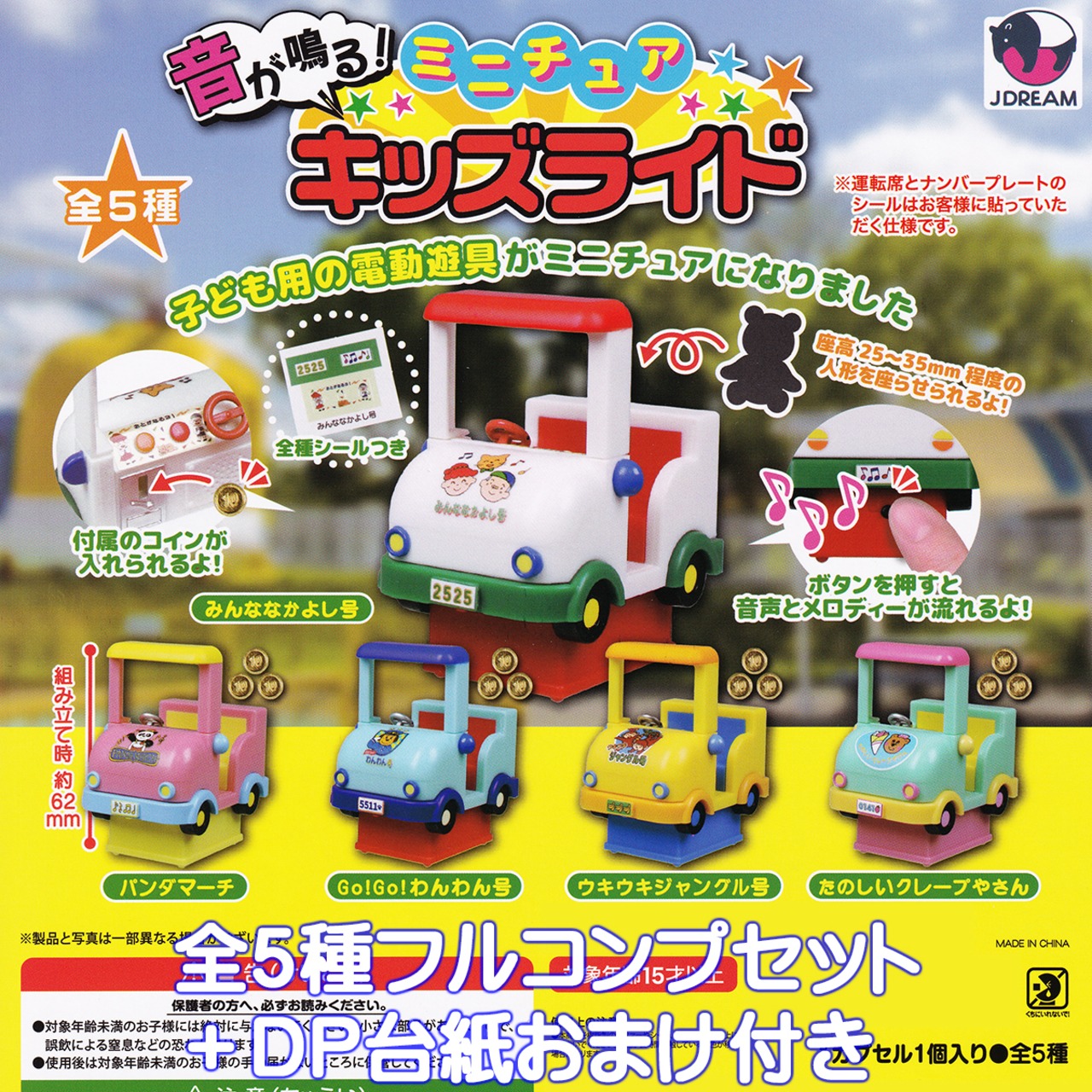 音が鳴る! ミニチュア キッズライド Jドリーム 【全5種フルコンプセット+DP台紙おまけ付き】 子ども用の電動遊具 グッズ フィギュア 模型 ガチャガチャ カプセルトイ【即納 在庫品】【数量限定】【フルコンプリート】 | お宝市場BASE店 【フィギュア・ガチャガチャ・ガチャポン・食玩・プライズ・アニメ・グッズ・模型・ミニチュア】