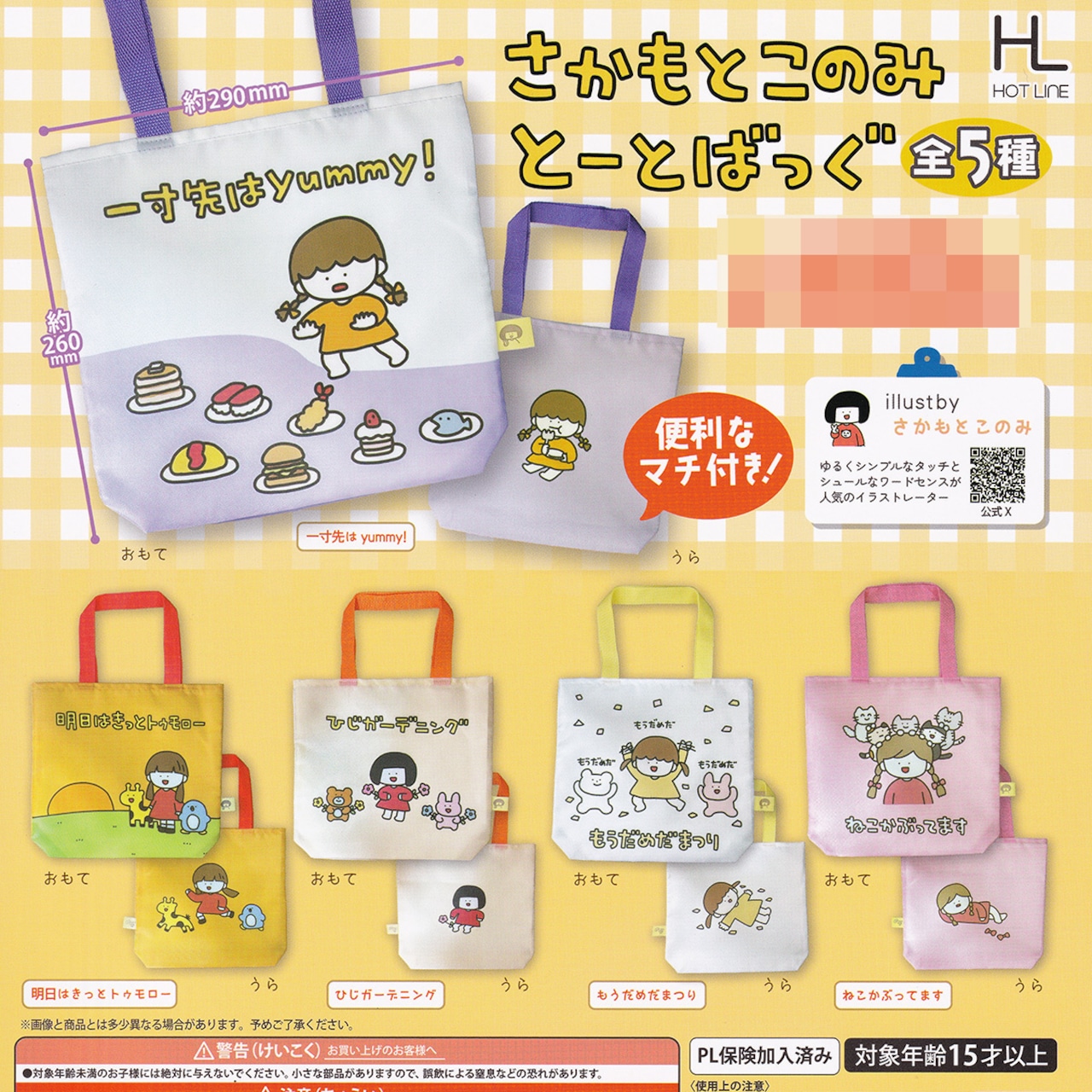 さかもとこのみとーとばっぐ ホットライン 【全5種セット(フルコンプ)+DP台紙おまけ付き】 TOTE BAG グッズ 手提げ袋 サブバッグ ガチャガチャ カプセルトイ【即納 在庫品】【数量限定】【フルコンプリート】 | お宝市場BASE店 【フィギュア・ガチャガチャ・ガチャポン・食玩・プライズ・アニメ・グッズ・模型・ミニチュア】