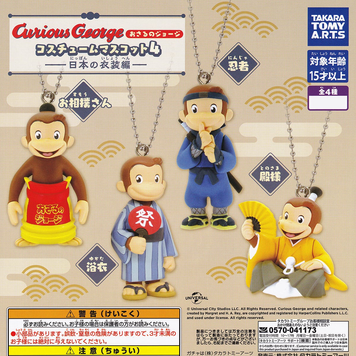 おさるのジョージ コスチュームマスコット4 日本の衣装編 タカラトミーアーツ 【全4種セット(フルコンプ)+DP台紙おまけ付き】 Curious George 動物グッズ フィギュア ガチャガチャ カプセルトイ【即納 在庫品】【数量限定】【フルコンプリート】 | お宝市場BASE店 【フィギュア・ガチャガチャ・ガチャポン・食玩・プライズ・アニメ・グッズ・模型・ミニチュア】