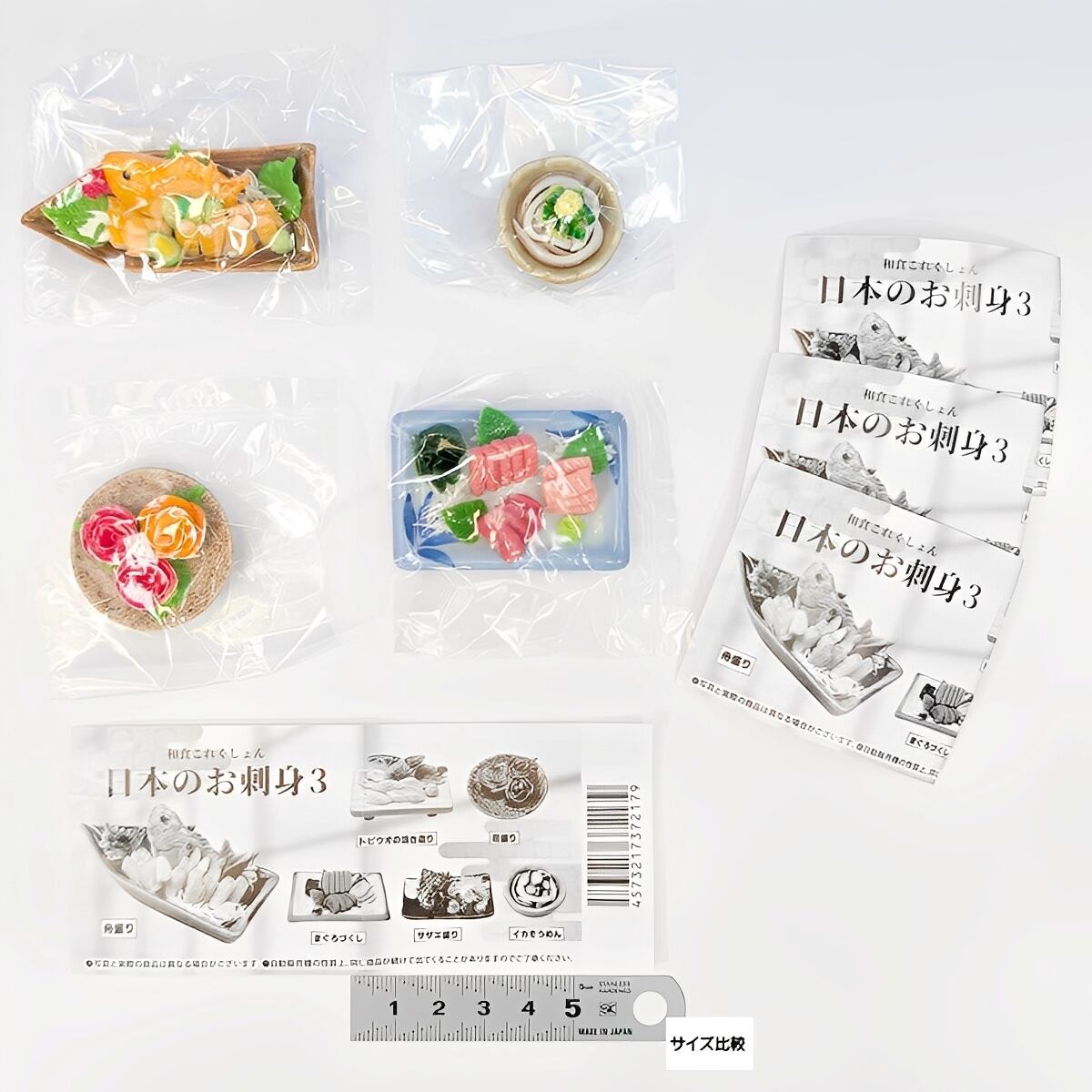 日本の食卓を彩る繊細なミニチュアで再現した人気シリーズ「和食これくしょん」第3弾。豪華な刺身の世界がカプセルトイで新登場です。