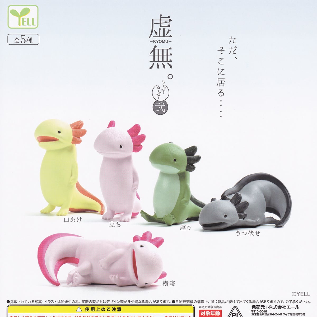 虚無。うーぱーるーぱー 弐 エール 【全5種セット(フルコンプ)+DP台紙おまけ付き】 KYOMU ウーパールーパー アホロートル 動物グッズ フィギュア ガチャガチャ カプセルトイ【即納 在庫品】【数量限定】【フルコンプリート】