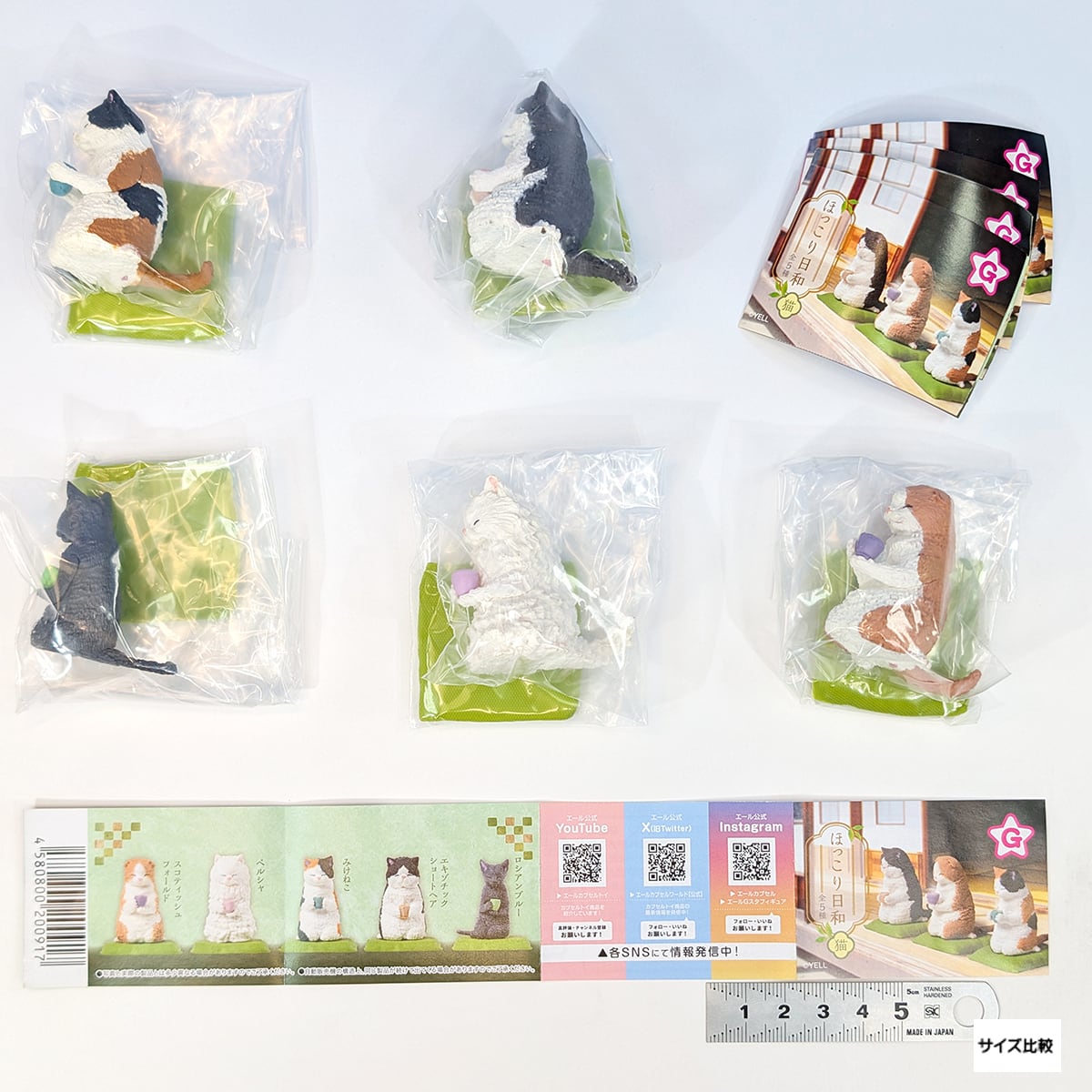 ほっこり日和 猫 エール 【全5種セット(フルコンプ)+DP台紙おまけ付き】 正座 座布団 湯呑み ねこ 動物グッズ フィギュア ガチャガチャ カプセルトイ【即納 在庫品】【数量限定】【フルコンプリート】