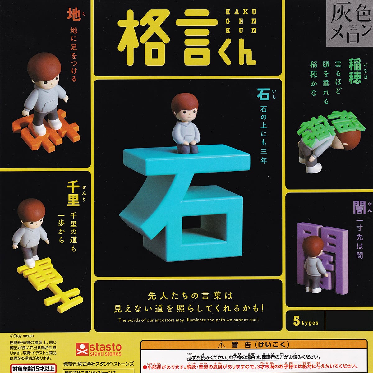 格言くん スタンド・ストーンズ 【全5種セット(フルコンプ)+DP台紙おまけ付き】 灰色メロン KAKU GEN KUN ミニチュアグッズ フィギュア ガチャガチャ カプセルトイ【即納 在庫品】【数量限定】【フルコンプリート】