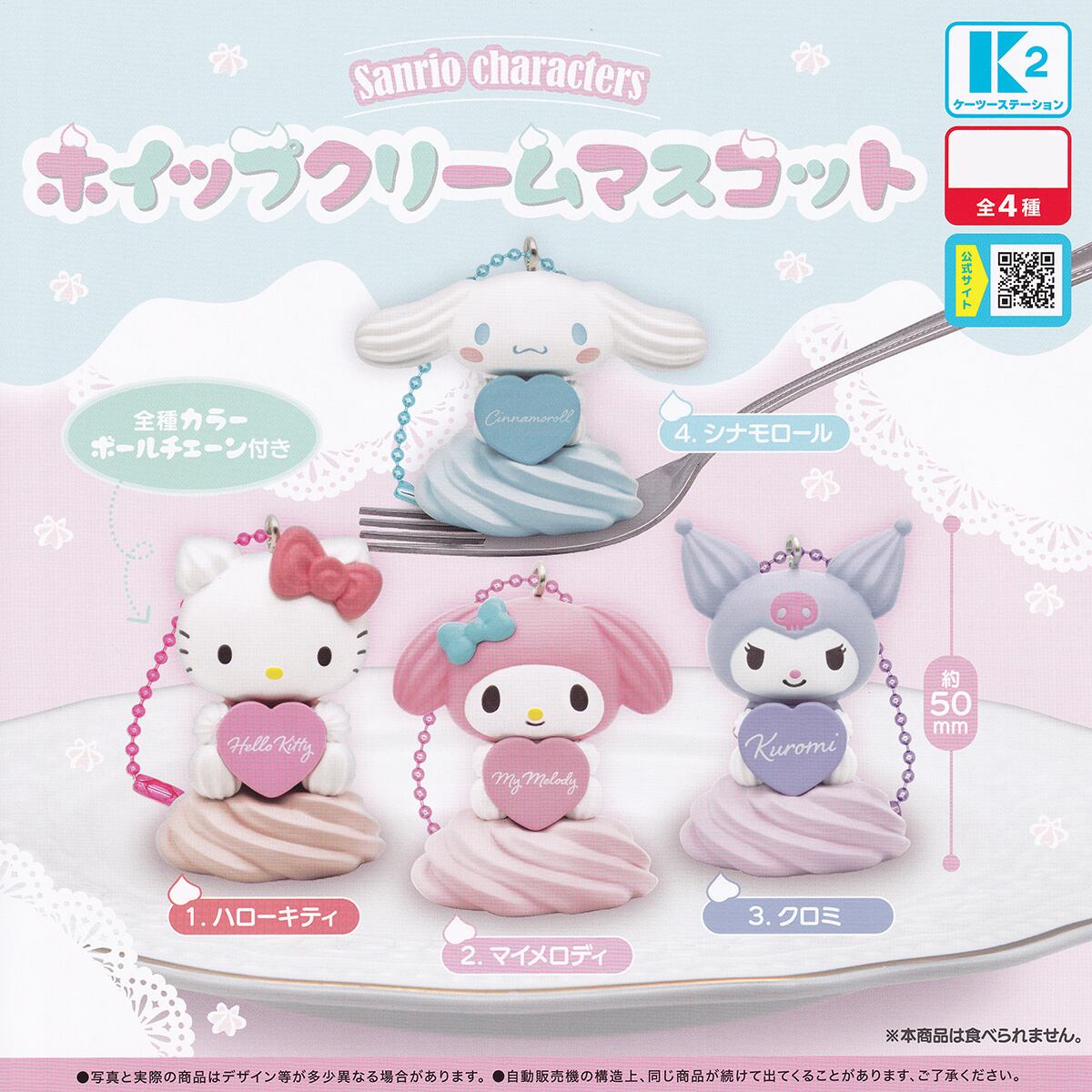 Sanrio characters ホイップクリームマスコット ケーツーステーション 【全4種セット(フルコンプ)+DP台紙おまけ付き】 サンリオキャラクターズ グッズ フィギュア ガチャガチャ カプセルトイ【即納 在庫品】【数量限定】【フルコンプリート】