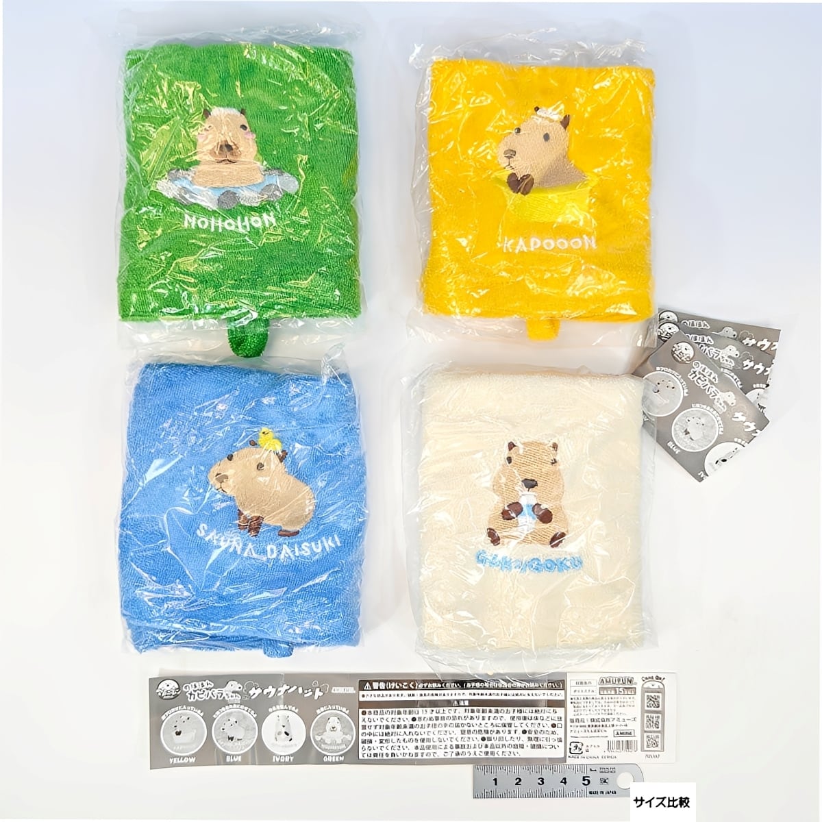 のほほんカピバラちゃんのサウナハット アミューズ 【全4種セット(フルコンプ)+DP台紙おまけ付き】 うすめのタオル生地 本当に被れる! 動物お風呂グッズ ガチャガチャ カプセルトイ【即納 在庫品】【数量限定】【フルコンプリート】