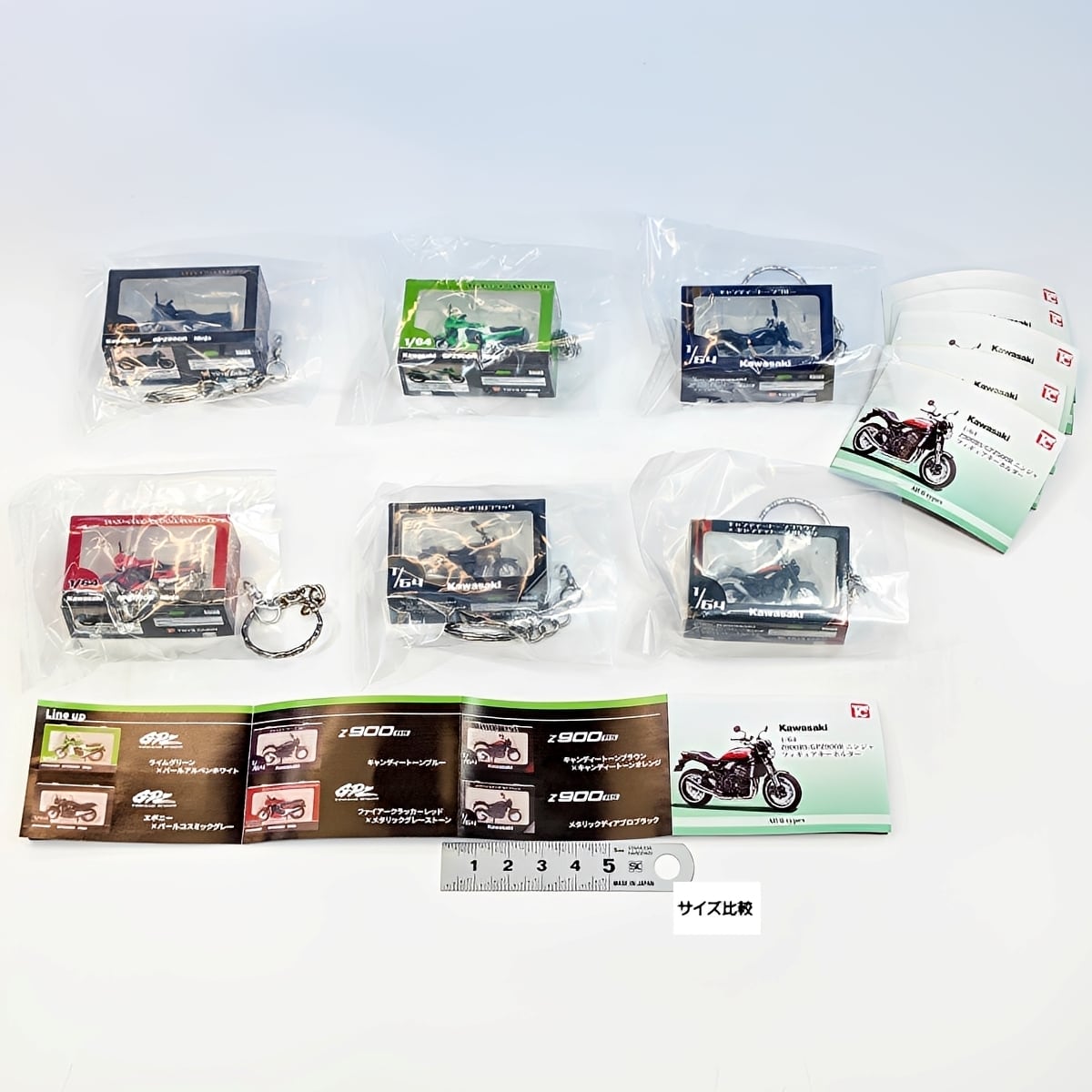 Kawasaki 1/64 Z900RS/GPZ900R ニンジャ フィギュアキーホルダー トイズキャビン 【全6種セット(フルコンプ)+DP台紙おまけ付き】 カワサキ Ninja オートバイ バイクグッズ フィギュア ガチャガチャ カプセルトイ【即納 在庫品 フルコンプリート】【送料無料/追跡有】