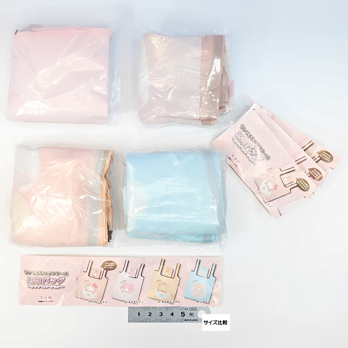 サンリオキャラクターズ エコバッグ ラテクマバージョン 夢屋 【全4種セット(フルコンプ)+DP台紙おまけ付き】 SANRIO ECOBAG グッズ 手提げ袋 ガチャガチャ カプセルトイ【即納 在庫品 フルコンプリート】【送料無料/追跡有】