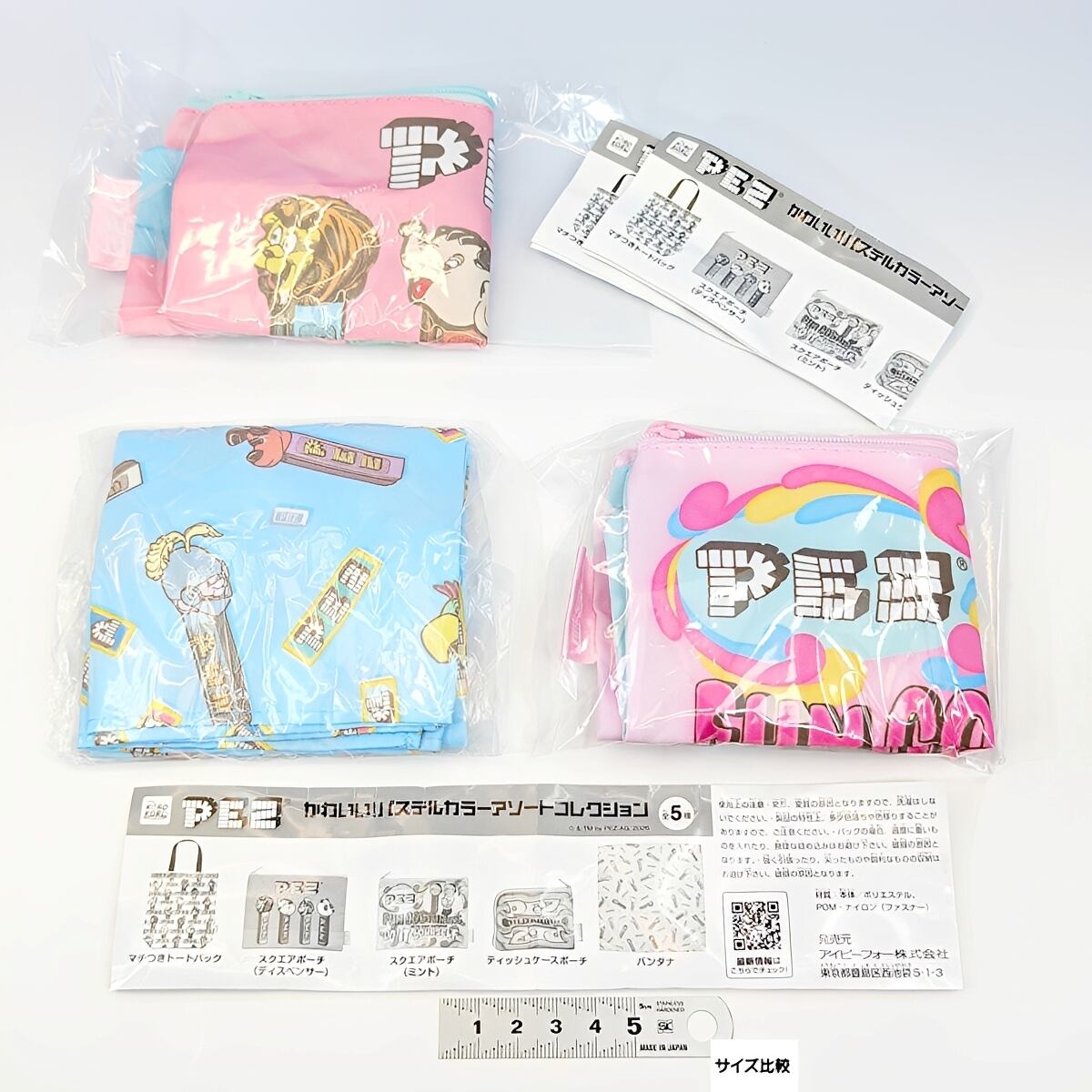 PEZ かわいい!パステルカラーアソートコレクション アイピーフォー 【人気の3種セット】 ペズ ペッツ グッズ 小物入れ ポーチ ガチャガチャ カプセルトイ 即納 在庫品 (ティッシュケースポーチ、マチつきトートバッグは含みません)