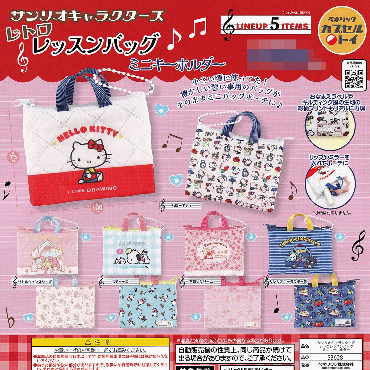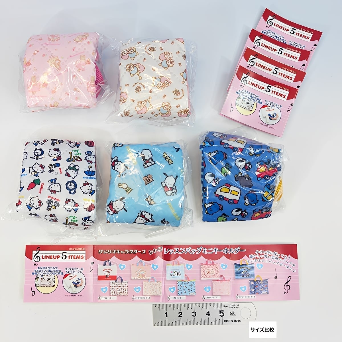 【フルコンプ】 サンリオキャラクターズ レトロレッスンバックミニキーホルダー 【全5種セット+DPディスプレイ台紙おまけ付き】 ベネリック SANRIO ハローキティ グッズ ミニチュア ガチャガチャ カプセルトイ 即納 在庫品 送料無料 追跡あり