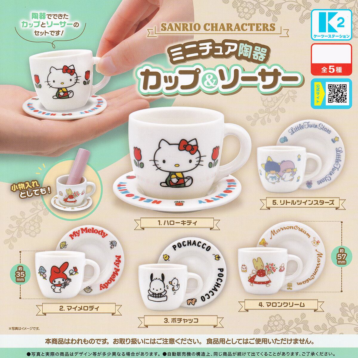 【フルコンプ】 サンリオキャラクターズ ミニチュア陶器 カップ&ソーサー 【全5種セット+DPディスプレイ台紙おまけ付き】 ケーツーステーション SANRIO CHARACTERS グッズ ハローキティ ガチャガチャ カプセルトイ 即納 在庫品 送料無料 追跡あり