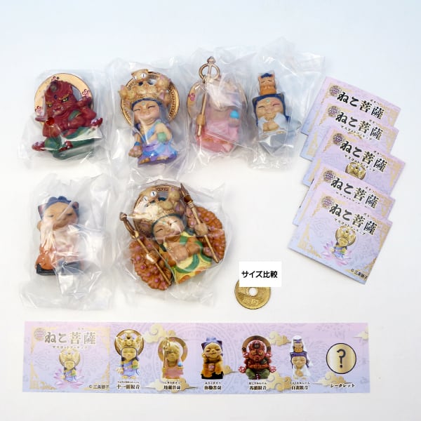 ほとけものシリーズ ねこ菩薩 マスコットフィギュア 猫 ネコ 三条獅子 動物 おもちゃ 模型 ガチャ クオリア Qualia (シークレットver.含む全6種フルコンプセット+DP台紙おまけ付き)