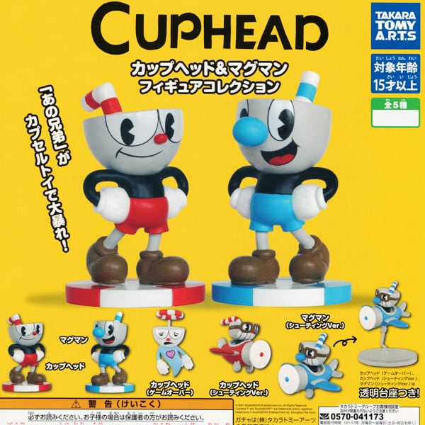 CUPHEAD カップヘッド&マグマン フィギュアコレクション ゲーム キャラクター グッズ ガチャ タカラトミーアーツ(全5種フルコンプセット+DP台紙おまけ付き)