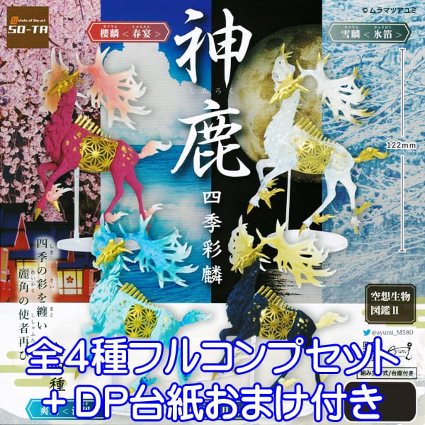 空想生物図鑑2 神鹿 四季彩麟 しんろく フィギュア 櫻麟 雪麟 爽麟 煌麟 ムラマツ アユミ 模型 グッズ ガチャ SO-TA(全4種フルコンプセット+DP台紙おまけ付)