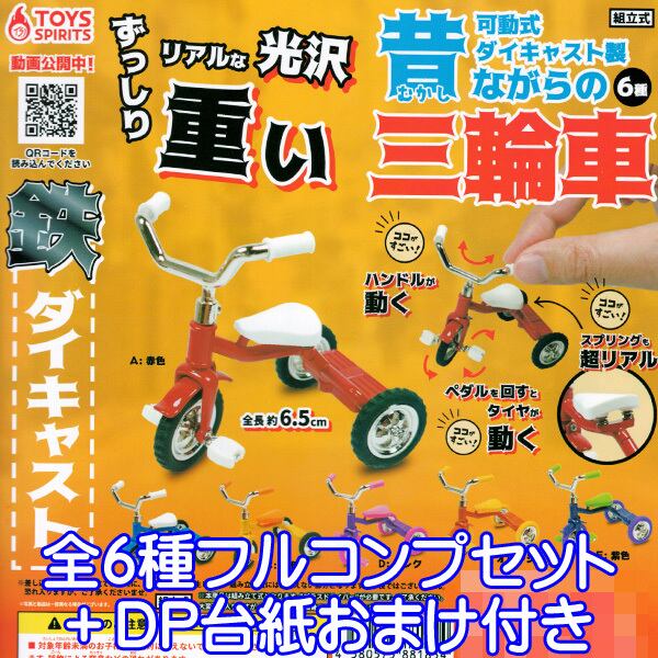 可動式ダイキャスト製 昔ながらの三輪車 ジオラマ 模型 グッズ スチール 鉄 おしゃれ ミニチュア おもちゃ ガチャ 株式会社トイズスピリッツ(全6種フルコンプセット+DP台紙おまけ付き)