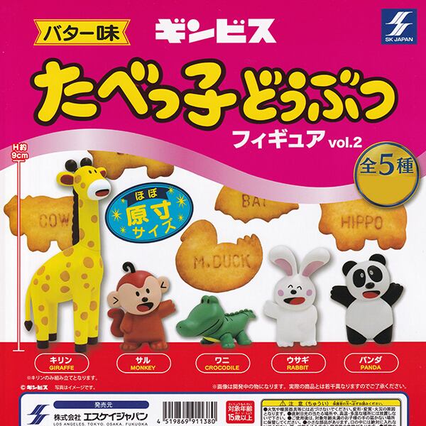 バター味 ギンビス たべっ子どうぶつ フィギュア vol.2 キャラクター フィギュア グッズ 動物 模型 おもちゃ ガチャ SKジャパン(全5種フルコンプセット+DP台紙おまけ付き)