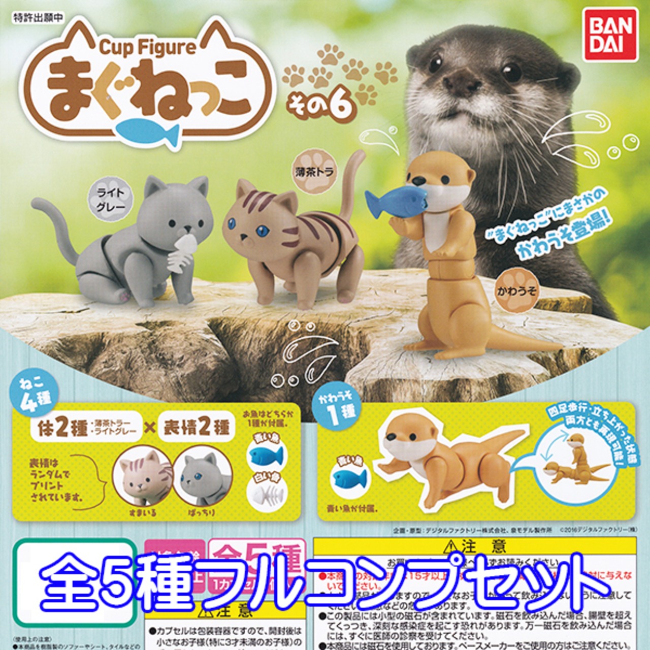 Cup Figure まぐねっこ その6 猫 獺 可動 フィギュア マグネット ねこ ネコ カワウソ ペット 動物 グッズ 模型 ガチャ バンダイ(全5種フルコンプセット)