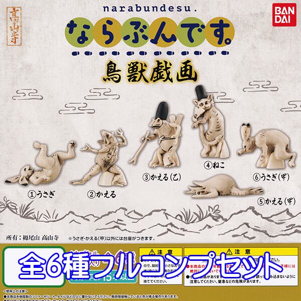 ならぶんです 鳥獣戯画 narabundesu. 絵巻物 うさぎ かえる ねこ グッズ フィギュア グッズ ガチャ バンダイ(全6種フルコンプセット)