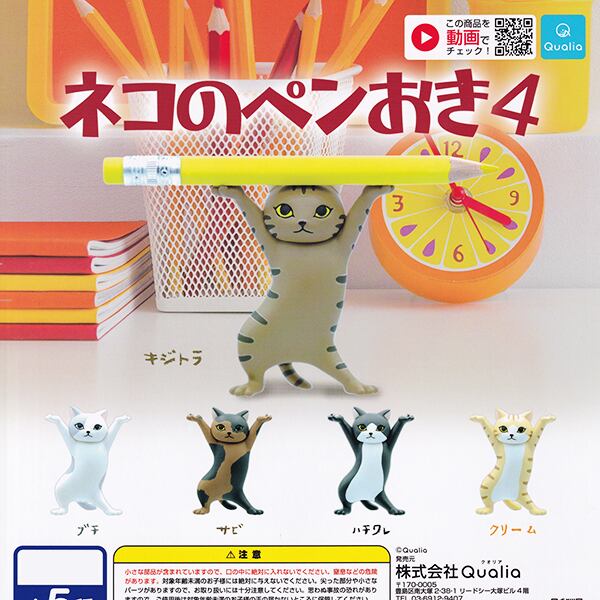 ネコのペンおき 4 猫 バンザイ グッズ フィギュア 第4弾 ねこ かわいい キャラクター 動物 ガチャ Qualia(シークレット含む全6種フルコンプセット+DP台紙おまけ付き)