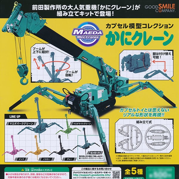 かにクレーン 前田製作所 重機 MAEDA カプセルトイ コレクション カニクレーン 模型 ガチャ グッドスマイルカンパニー (全5種フルコンプセット+DP台紙おまけ付き)