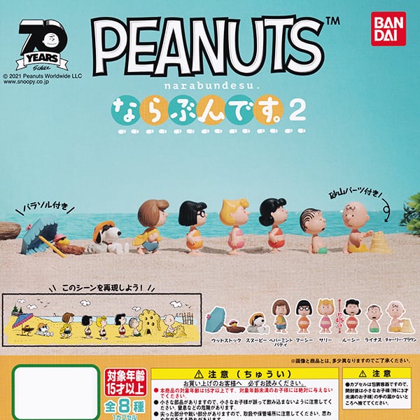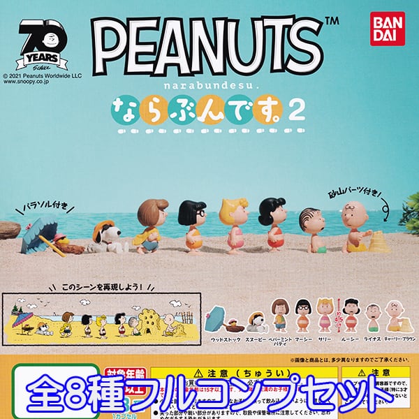 PEANUTS ならぶんです。2 Narabundesu フィギュア ミニチュア スヌーピー 模型 おもちゃ SNOOPY キャラ グッズ ガチャ バンダイ(全8種フルコンプセット)