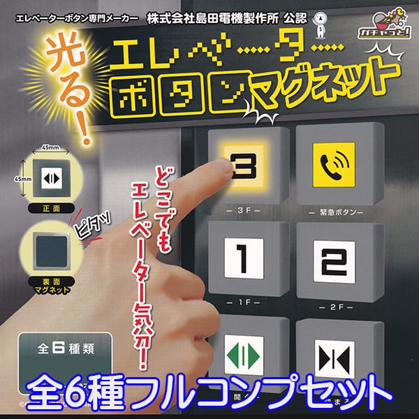 光る! エレベーターボタンマグネット 磁石 押す グッズ 株式会社島田電機製作所 公認 模型 ガチャ ブライトリンク(全6種フルコンプセット)