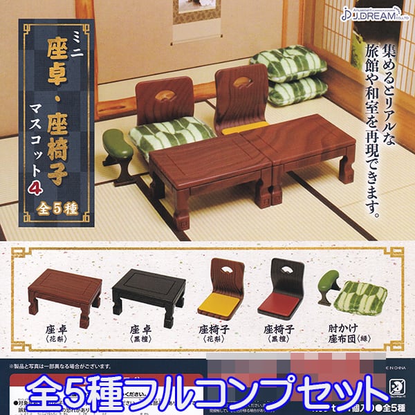 ミニ 座卓・座椅子マスコット4 和室 再現 ミニチュア グッズ フィギュア おもちゃ ガチャ J.ドリーム(全5種フルコンプセット)