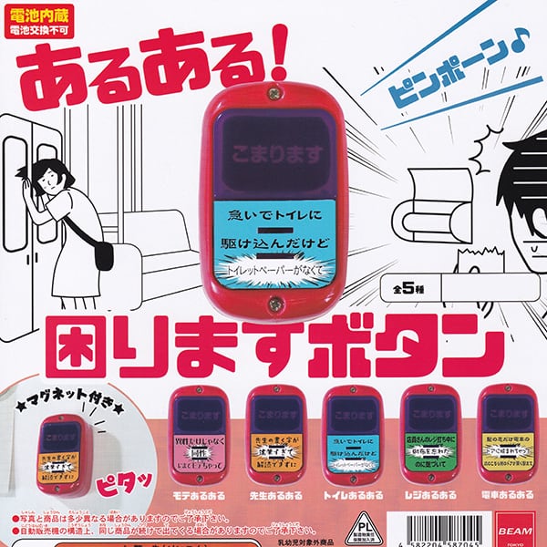 あるある!困りますボタン マグネット付き 押すボタン グッズ ガチャ ビーム(全5種フルコンプセット)