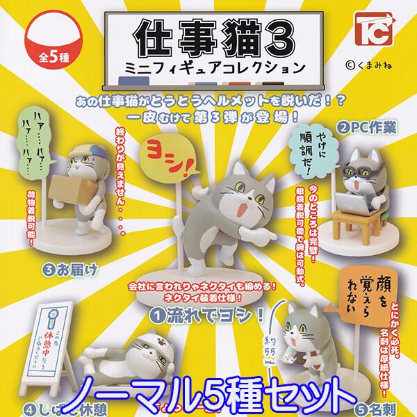 仕事猫 ミニフィギュアコレクション3 くまみね 猫 ネコ ねこ 動物 キャラクター グッズ フィギュア ガチャ トイズキャビン(ノーマル5種セット)
