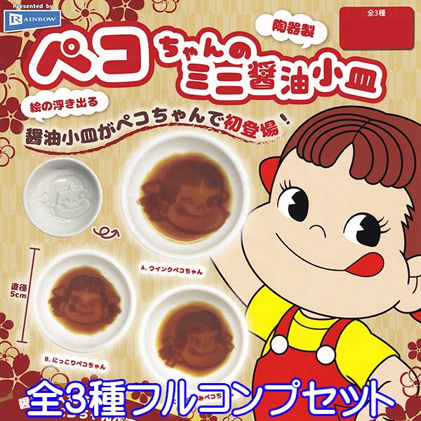 ペコちゃんのミニ醤油小皿 陶器製 絵の浮き出る 不二家 キャラクター グッズ FUJIYA ガチャガチャ レインボー(全3種フルコンプセット)